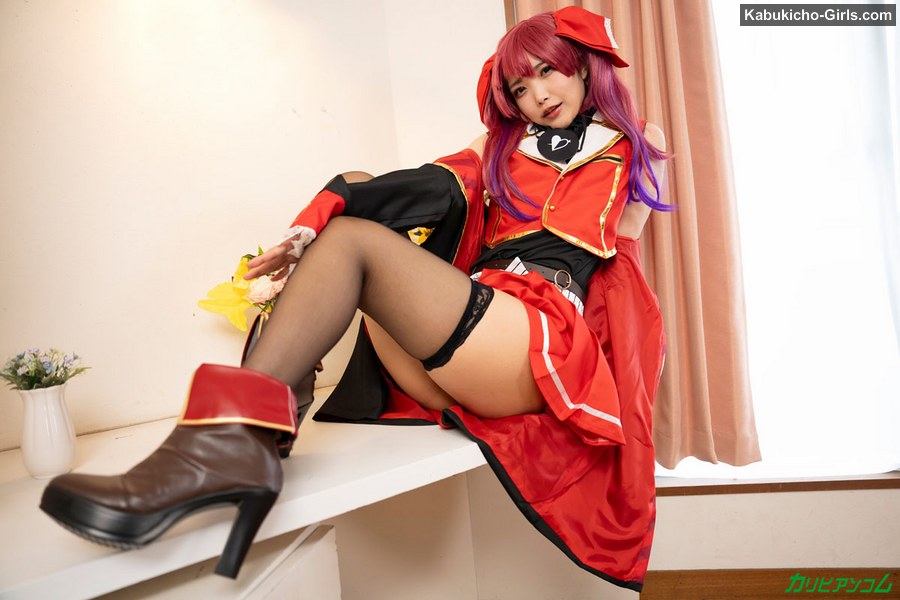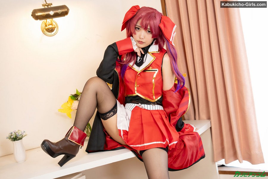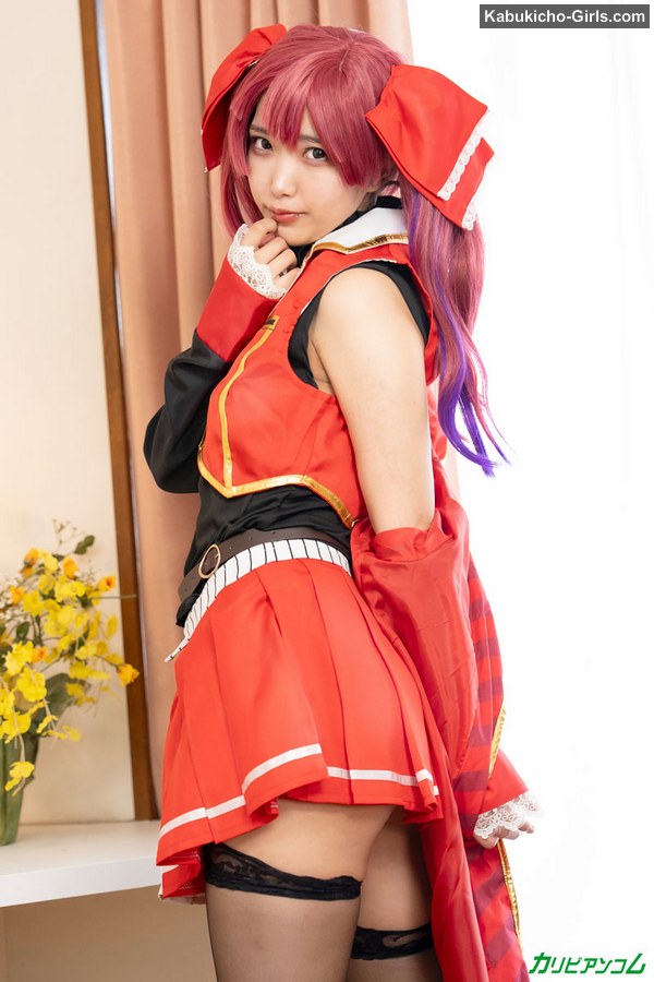 大きな帽子に赤い赤いミニスカコスチューム。